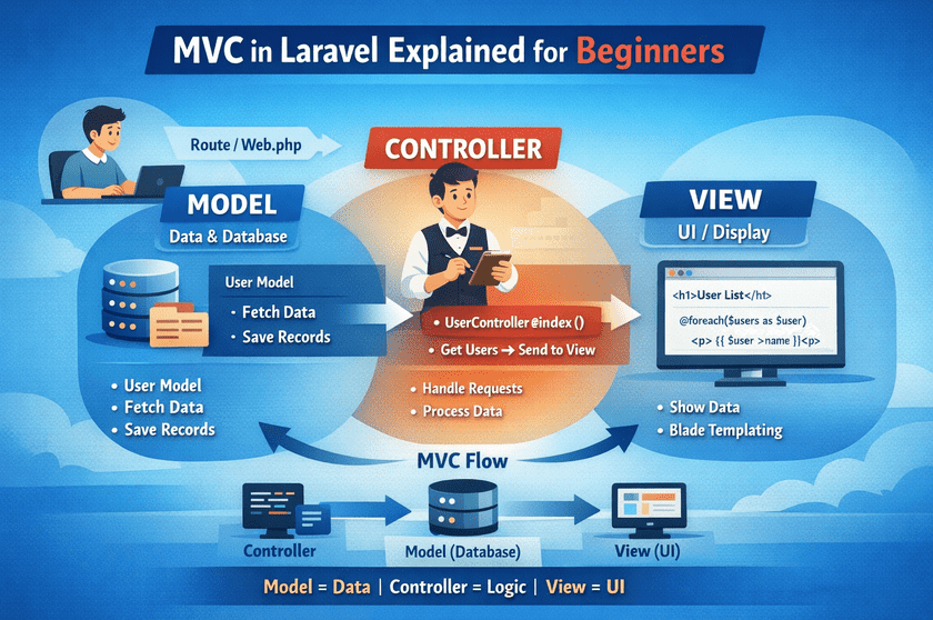 This blog will explain the MVC concept in Laravel in the simplest possible way, even if you have zero programming knowledge.