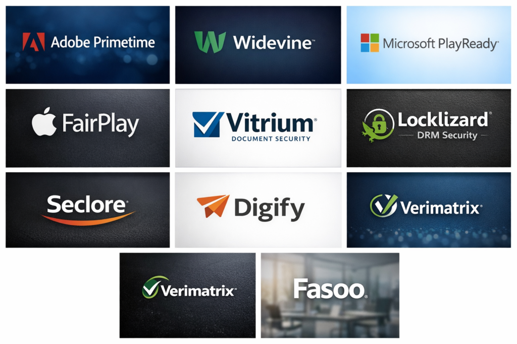 • Enterprises & broadcasters: Adobe Primetime, Verimatrix, and Fasoo deliver enterprise-grade governance and performance.