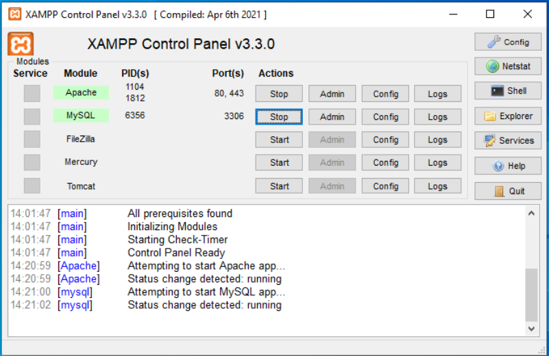 2. Start Apache and MySQL: After installing XAMPP, start the Apache server and MySQL database from the XAMPP Control Panel. You can do this by launching the XAMPP Control Panel and clicking on the “Start” buttons next to Apache and MySQL.